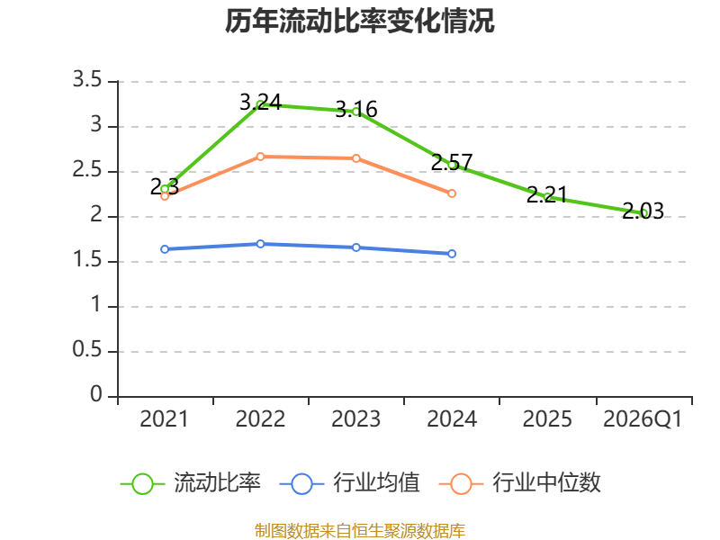 2026年第一季度,公司流动比率为2.03,速动比率为1.82。