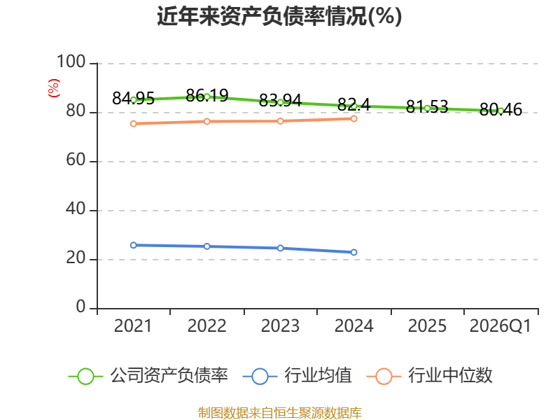 负债重大变化方面,截至2026年一季度末,公司应付票据及应付账款较上年末减少25.35%,占公司总资产比重下降6.49个百分点;一年内到期的非流动负债较上年末增加28.91%,占公司总资产比重上升2.58个百分点;应付债券占公司总资产的2.45%,上年末为0;短期借款较上年末增加6.45%,占公司总资产比重上升1.3个百分点。