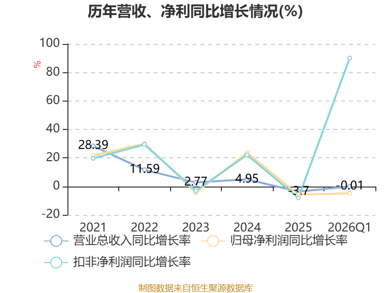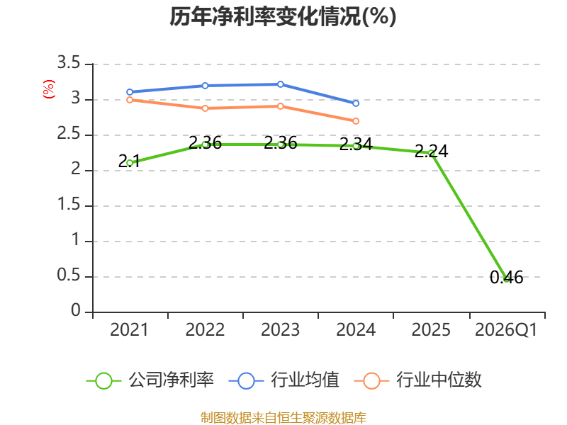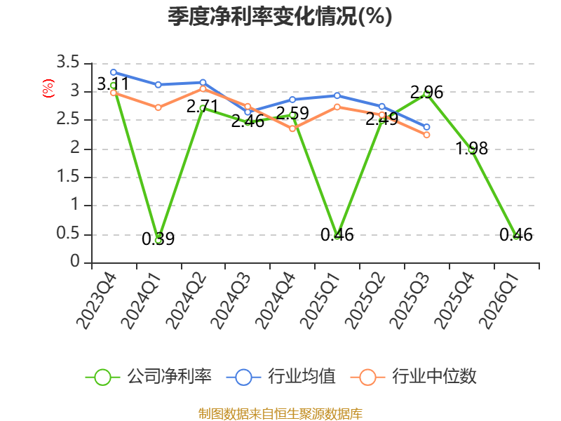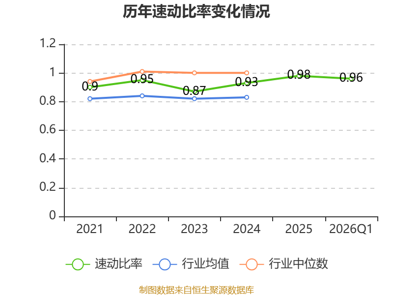 2026年第一季度,公司流动比率为1.02,速动比率为0.96。