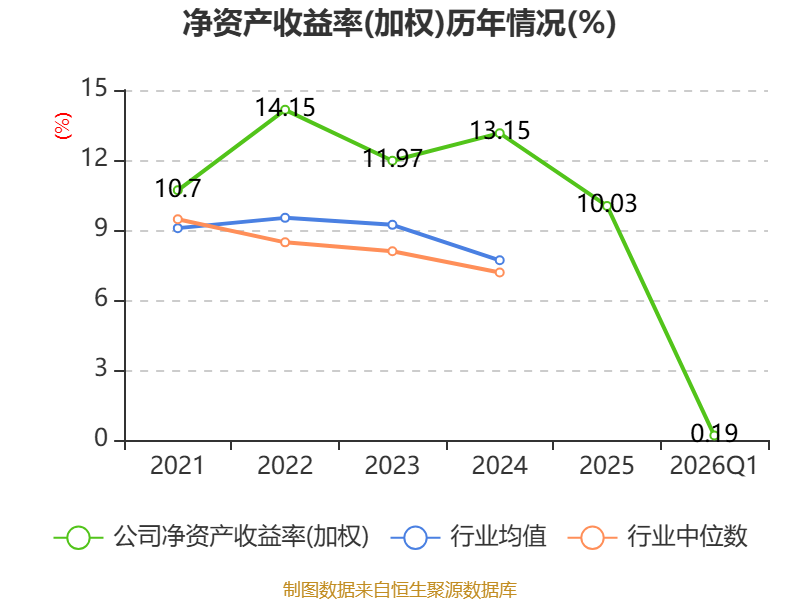 盈利能力方面, 2026年一季度公司加权平均净资产收益率为0.19%,同比下降0.03个百分点。公司2026年第一季度投入资本回报率为0.23%,较上年同期下降0.05个百分点。
