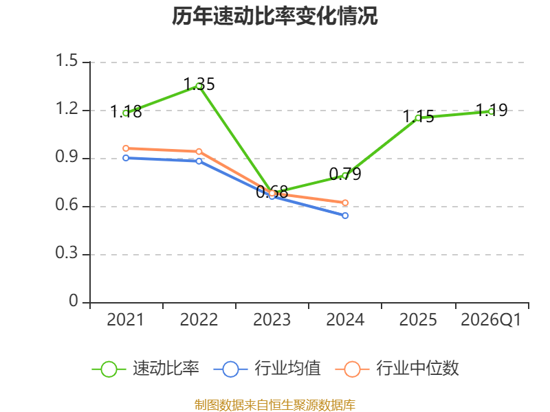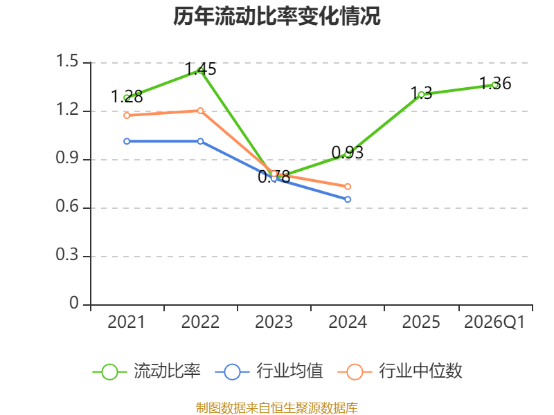 2026年第一季度,公司流动比率为1.36,速动比率为1.19。