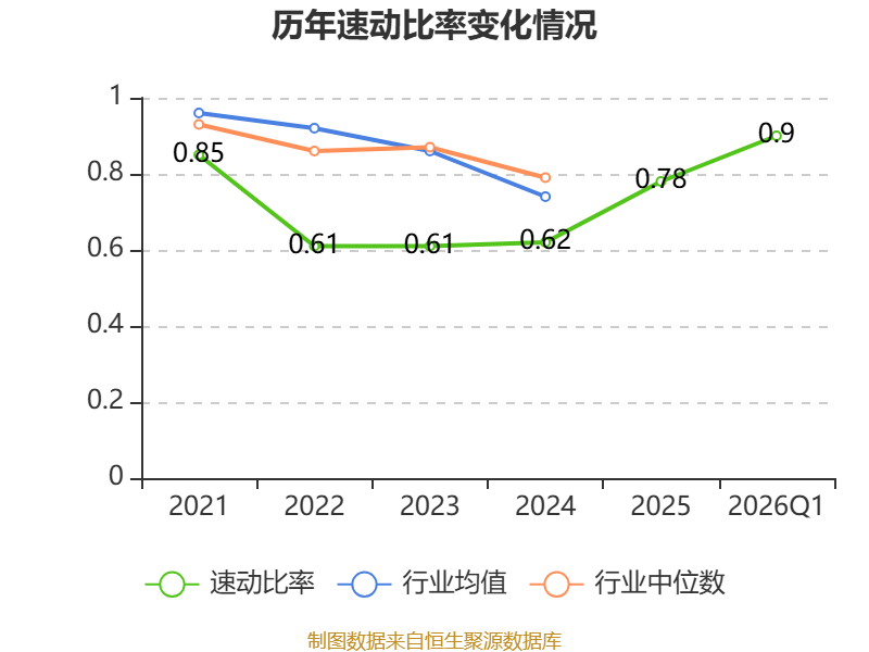 2026年第一季度,公司流动比率为1.18,速动比率为0.9。