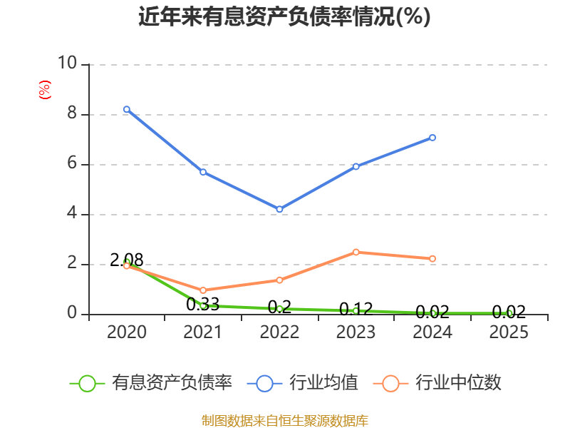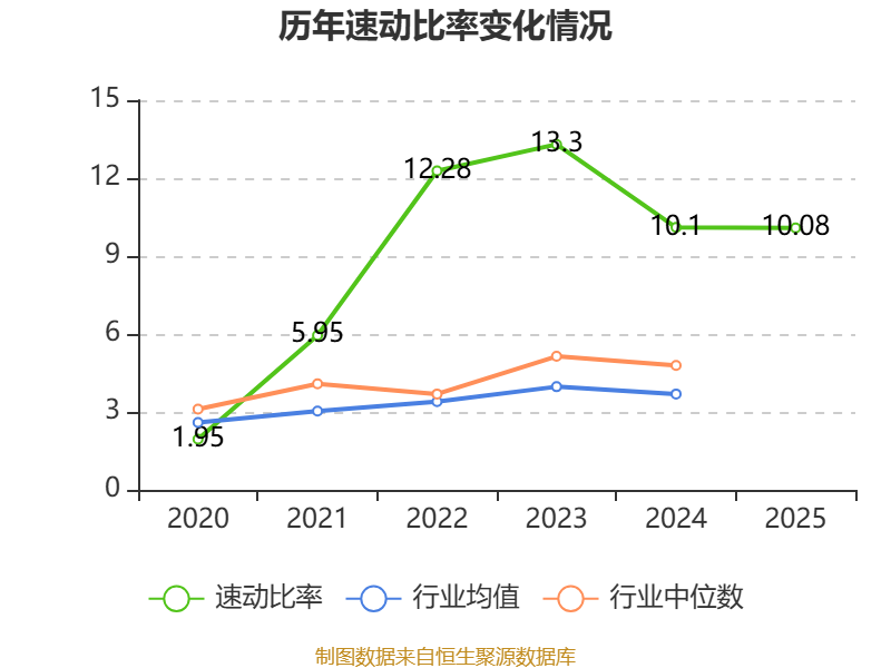 2025年,公司流动比率为10.52,速动比率为10.08。
