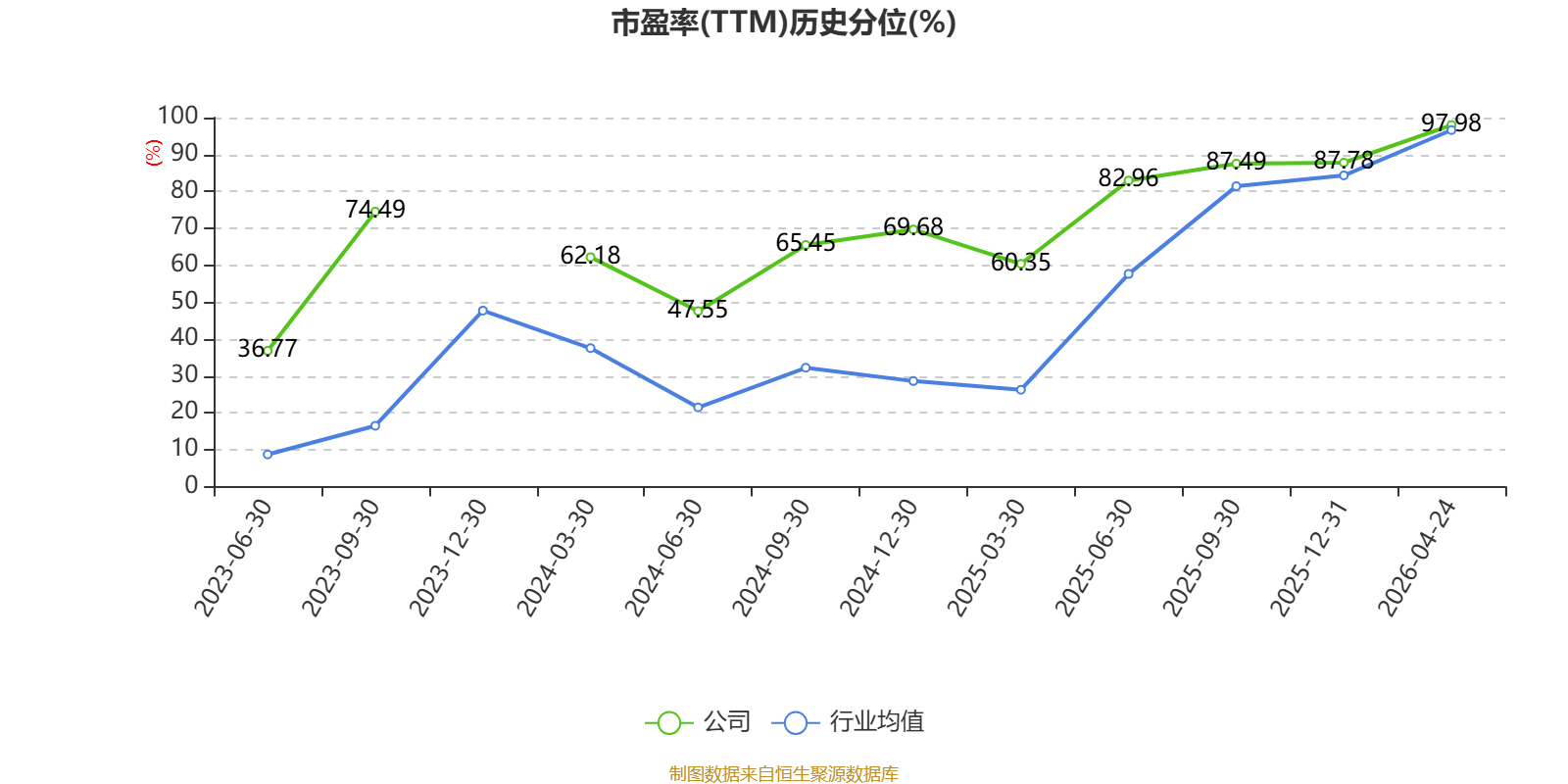 市盈率、市净率为负时,不显示当期分位数,会导致折线图中断。