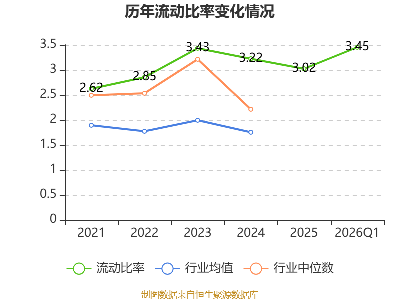 2026年第一季度,公司流动比率为3.45,速动比率为2.73。