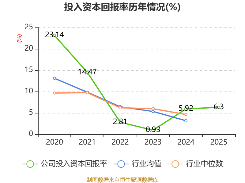数据显示,2025年公司加权平均净资产收益率为7.31%,较上年同期上升1.17个百分点。公司2025年投入资本回报率为6.3%,较上年同期上升0.38个百分点。