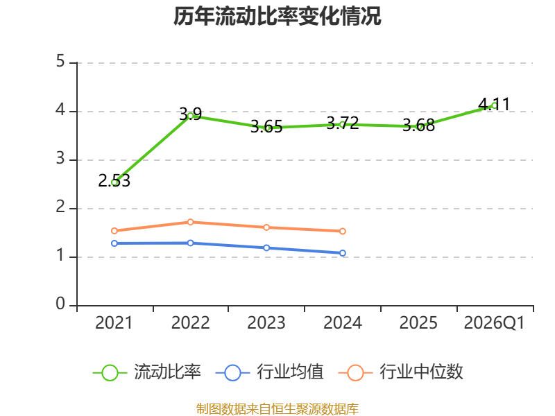 2026年第一季度,公司流动比率为4.11,速动比率为3.36。