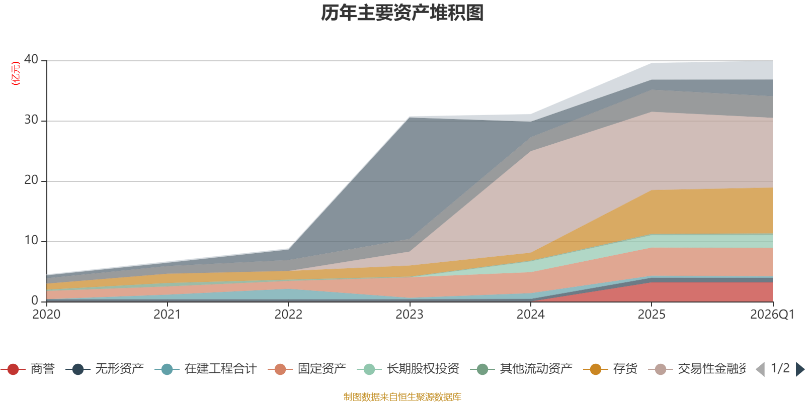资产重大变化方面,截至2026年一季度末,公司交易性金融资产合计较上年末减少10.98%,占公司总资产比重下降3.88个百分点;货币资金较上年末增加68.2%,占公司总资产比重上升2.78个百分点;存货较上年末增加4.67%,占公司总资产比重上升0.68个百分点;应收票据及应收账款较上年末减少2.5%,占公司总资产比重下降0.32个百分点。