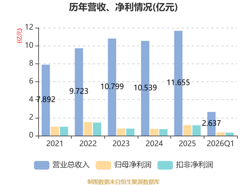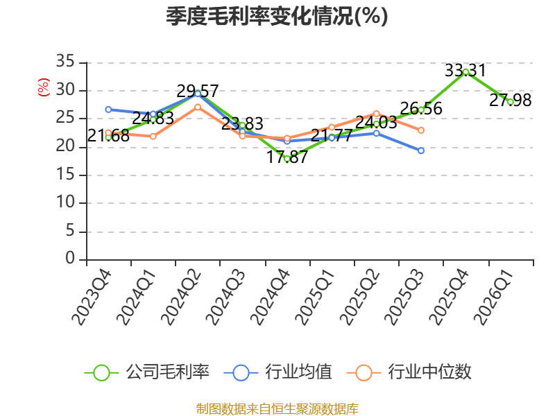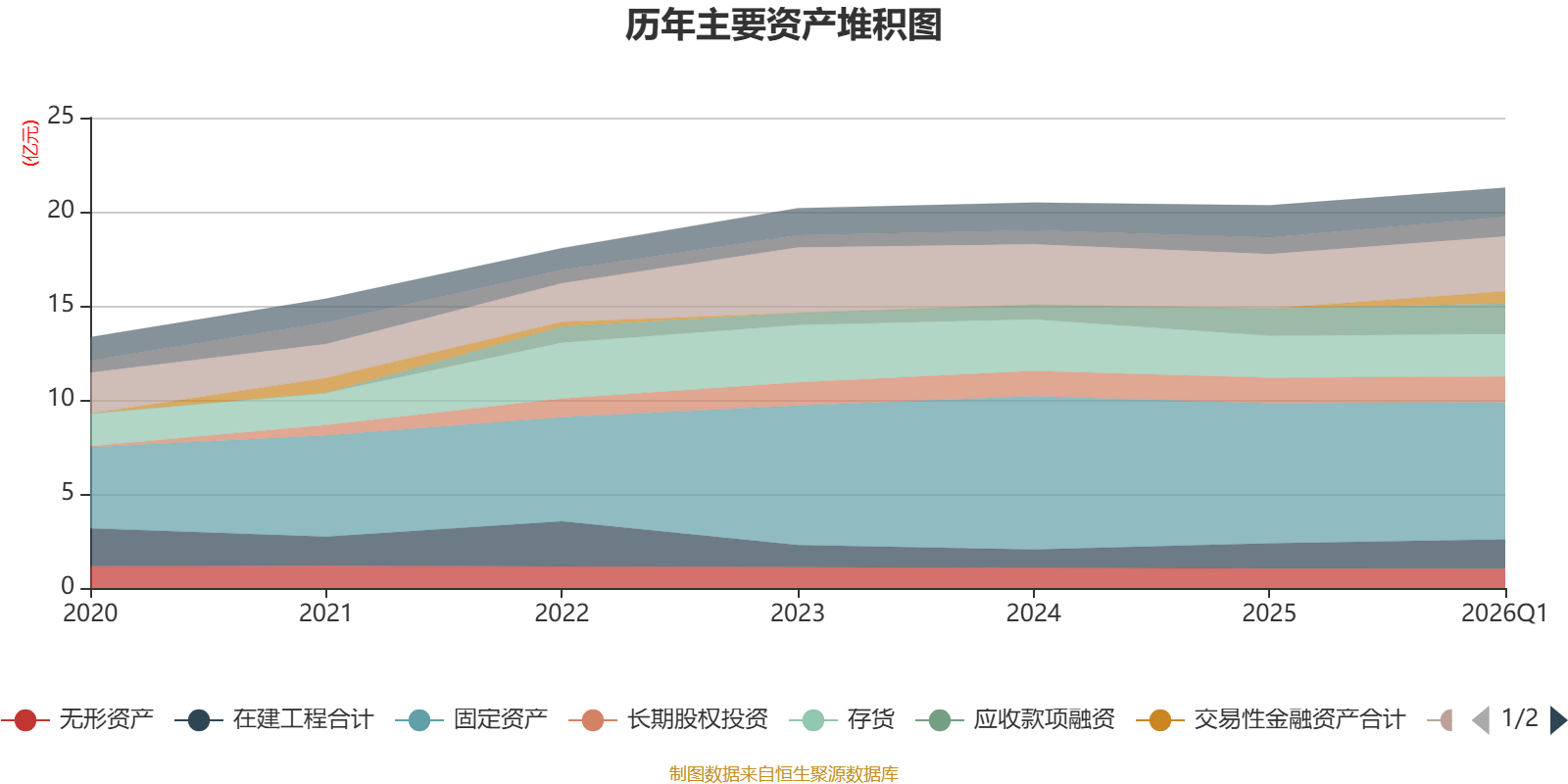 资产重大变化方面,截至2026年一季度末,公司交易性金融资产合计占公司总资产的3.06%,上年末为0;固定资产较上年末减少2.01%,占公司总资产比重下降2.32个百分点;在建工程合计较上年末增加16.32%,占公司总资产比重上升0.74个百分点;货币资金较上年末增加17.3%,占公司总资产比重上升0.53个百分点。