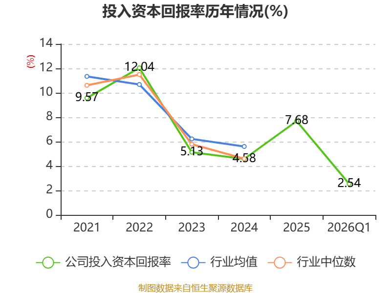 盈利能力方面, 2026年一季度公司加权平均净资产收益率为2.66%,同比上升1.64个百分点。公司2026年第一季度投入资本回报率为2.54%,较上年同期上升1.81个百分点。