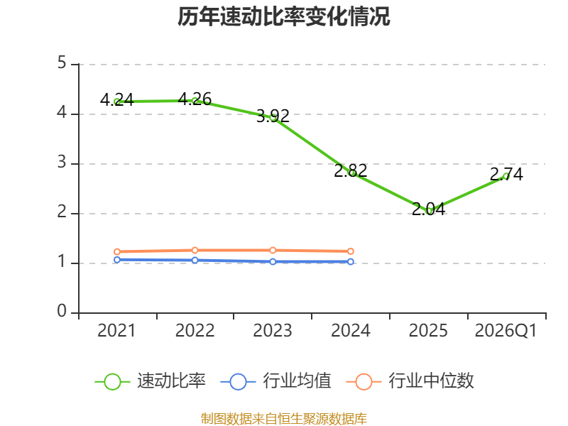 2026年第一季度,公司流动比率为3.13,速动比率为2.74。