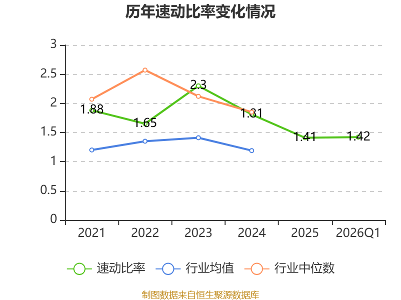 2026年第一季度,公司流动比率为2.12,速动比率为1.42。