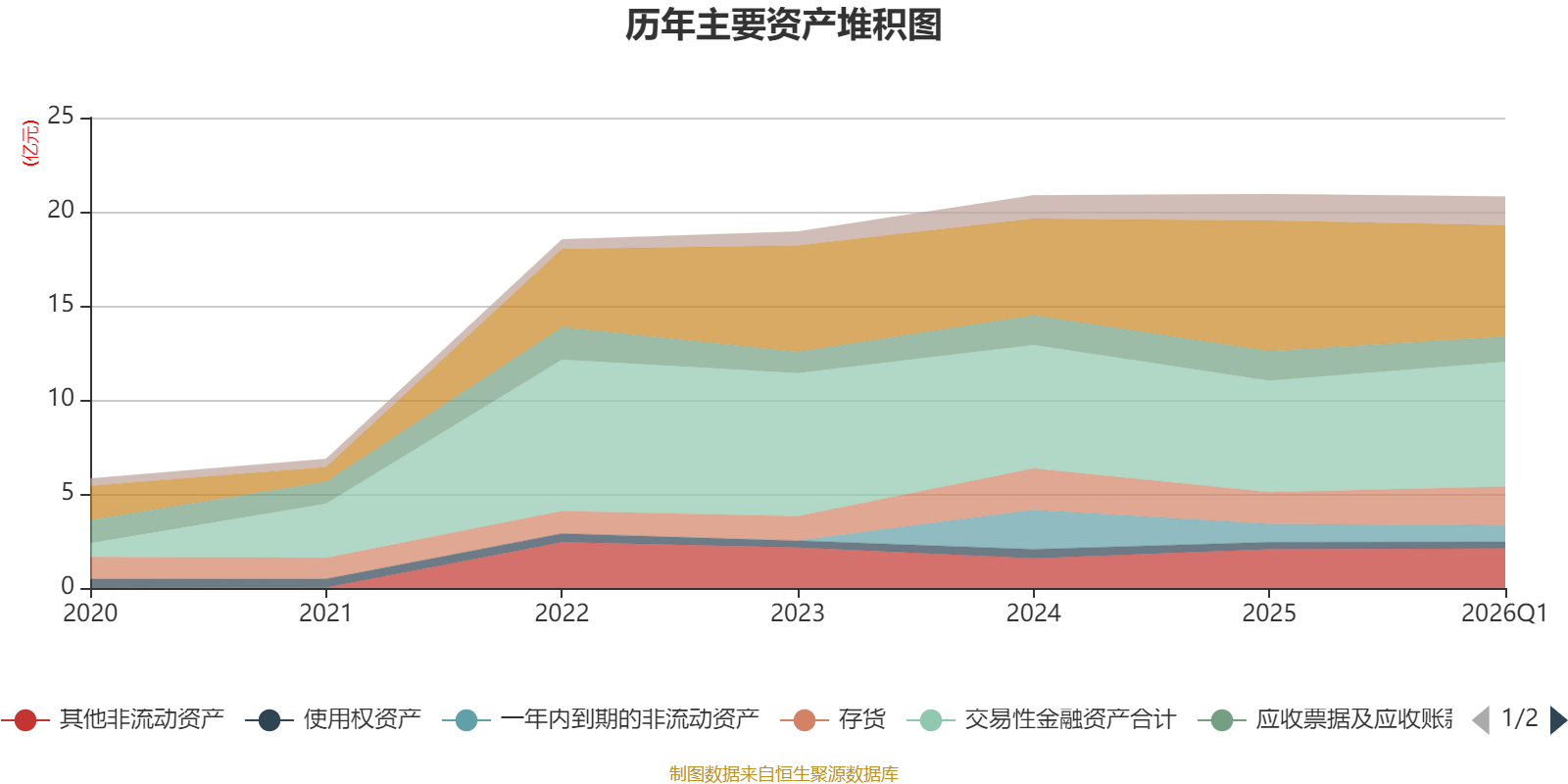 资产重大变化方面,截至2026年一季度末,公司货币资金较上年末减少14.71%,占公司总资产比重下降4.71个百分点;交易性金融资产合计较上年末增加11.71%,占公司总资产比重上升3.51个百分点;存货较上年末增加22.59%,占公司总资产比重上升1.88个百分点;固定资产较上年末增加72.53%,占公司总资产比重上升1.15个百分点。