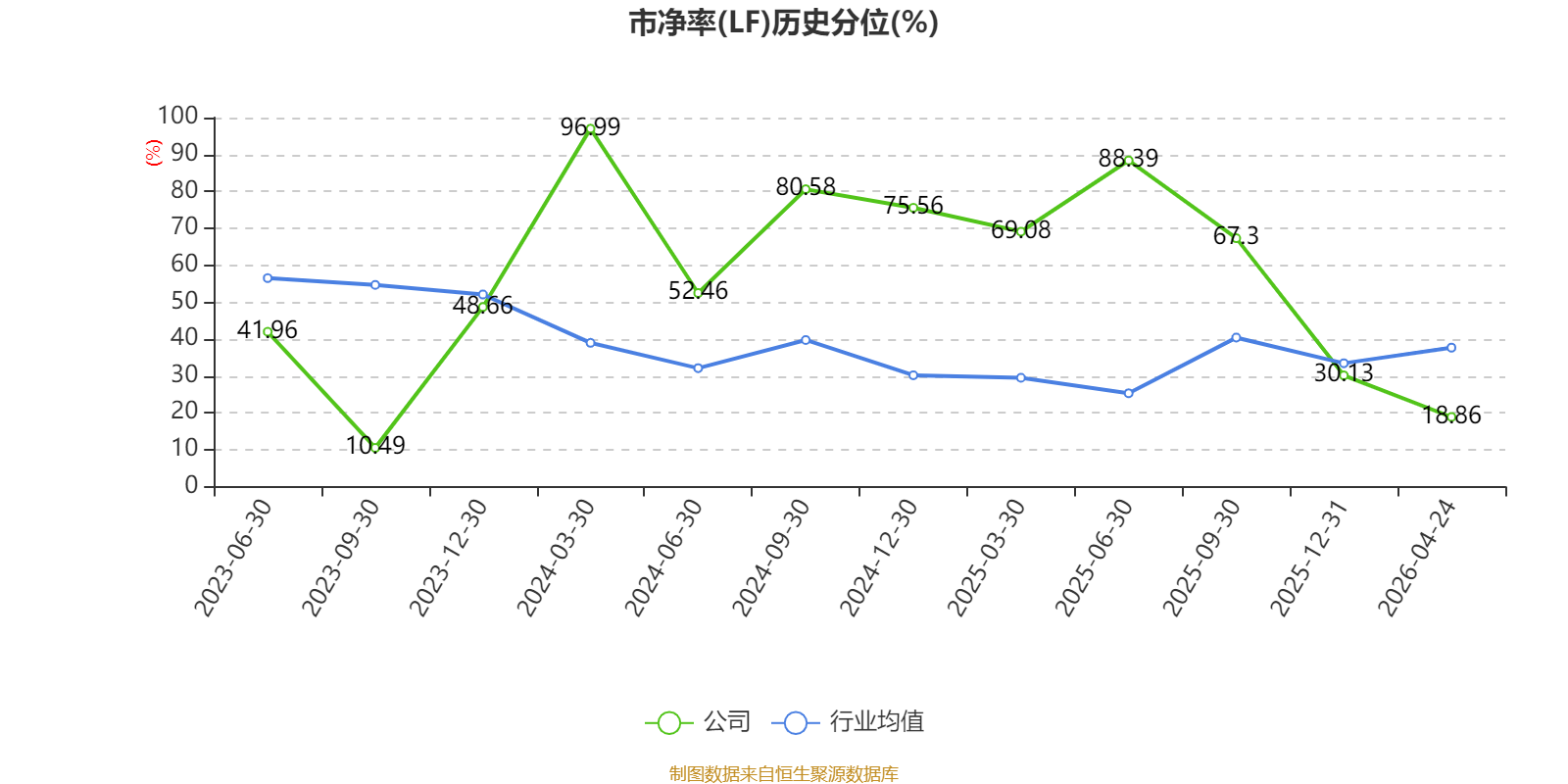 市盈率、市净率为负时,不显示当期分位数,会导致折线图中断。