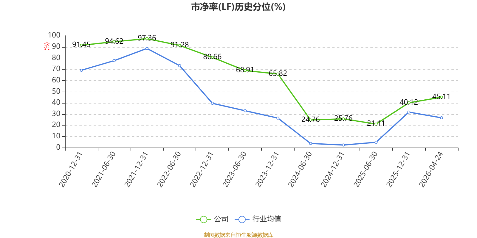 市盈率、市净率为负时,不显示当期分位数,会导致折线图中断。