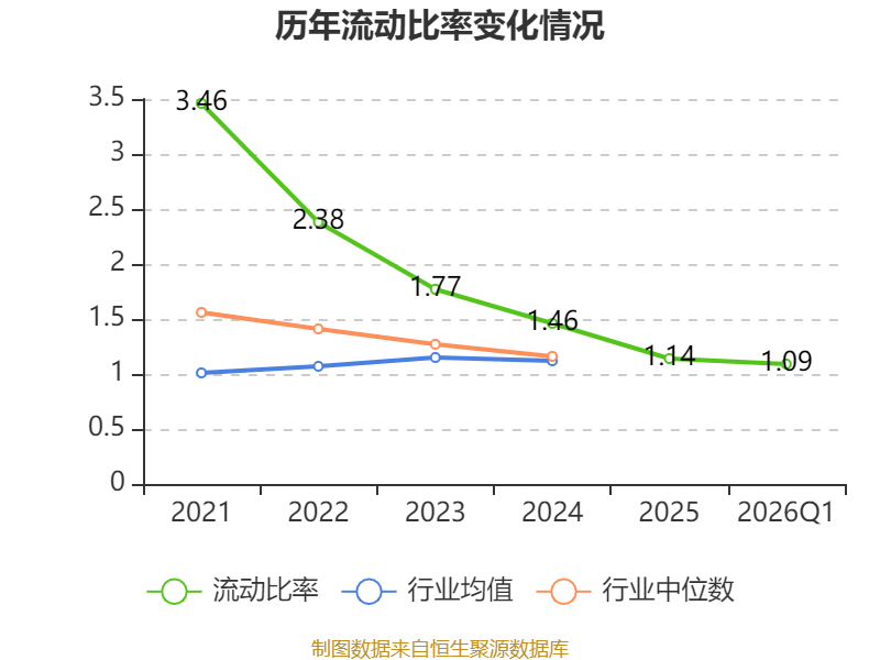 2026年第一季度,公司流动比率为1.09,速动比率为0.43。