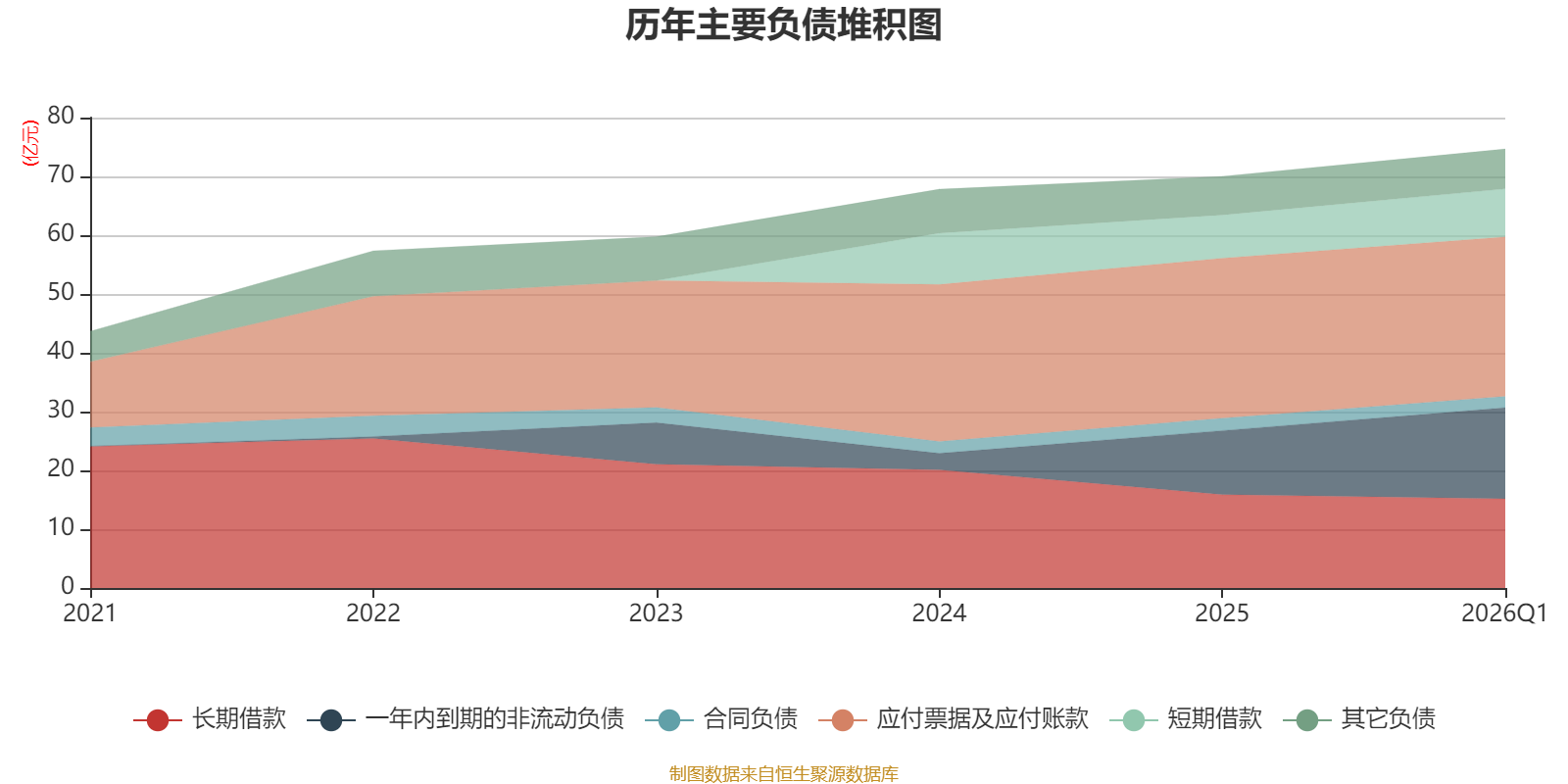 负债重大变化方面,截至2026年一季度末,公司一年内到期的非流动负债较上年末增加42.35%,占公司总资产比重上升3.38个百分点;长期借款较上年末减少4.44%,占公司总资产比重下降0.87个百分点;应付票据及应付账款较上年末减少0.3%,占公司总资产比重下降0.61个百分点;短期借款较上年末增加11.53%,占公司总资产比重上升0.51个百分点。