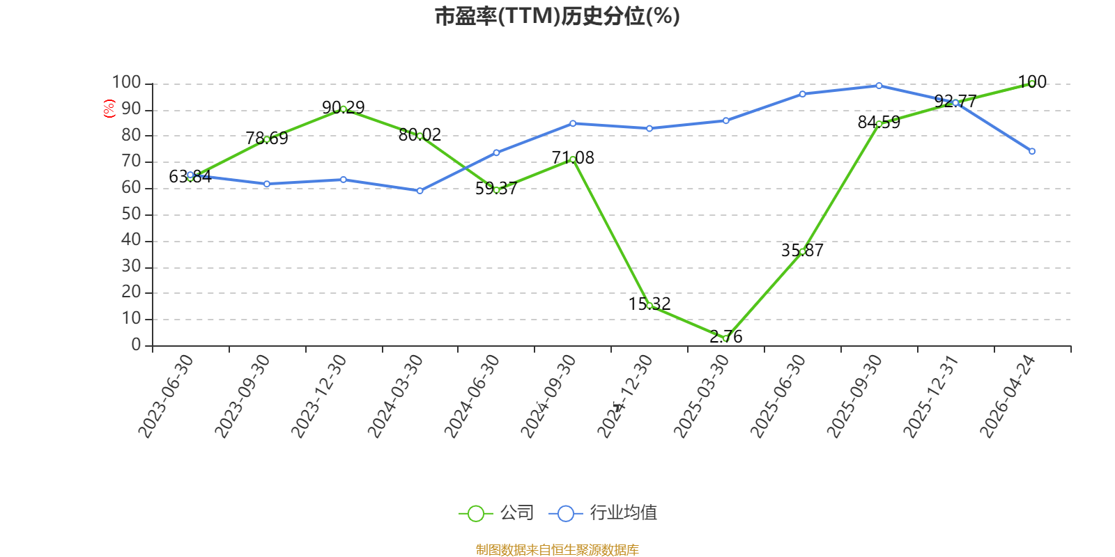 市盈率、市净率为负时,不显示当期分位数,会导致折线图中断。