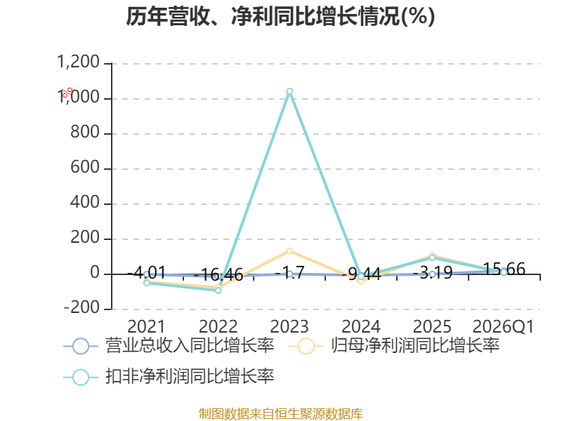 资产重大变化方面,截至2026年一季度末,公司货币资金较上年末增加11.37%,占公司总资产比重上升3.14个百分点;存货较上年末减少11.74%,占公司总资产比重下降1.41个百分点;其他流动资产较上年末减少37.28%,占公司总资产比重下降0.88个百分点;在建工程合计较上年末减少39.34%,占公司总资产比重下降0.79个百分点。