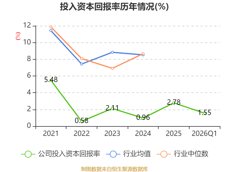 盈利能力方面, 2026年一季度公司加权平均净资产收益率为1.64%,同比上升0.48个百分点。公司2026年第一季度投入资本回报率为1.55%,较上年同期上升0.05个百分点。
