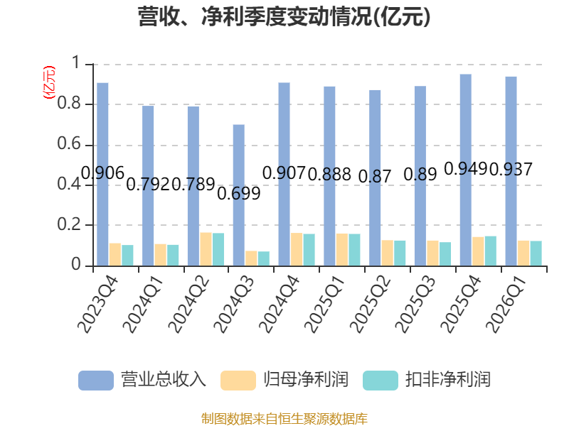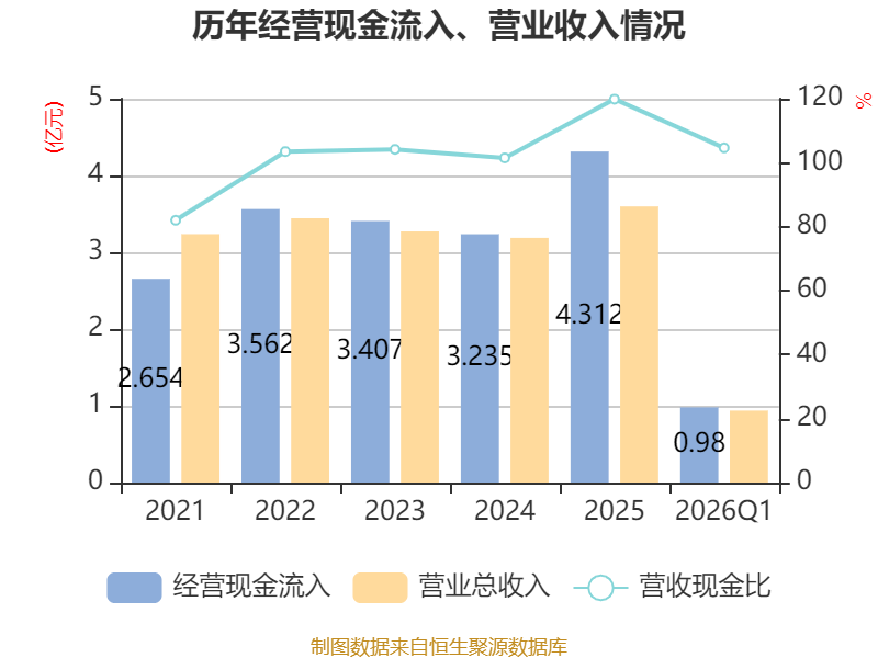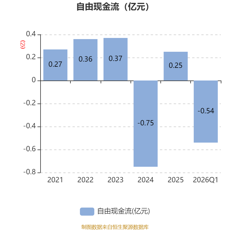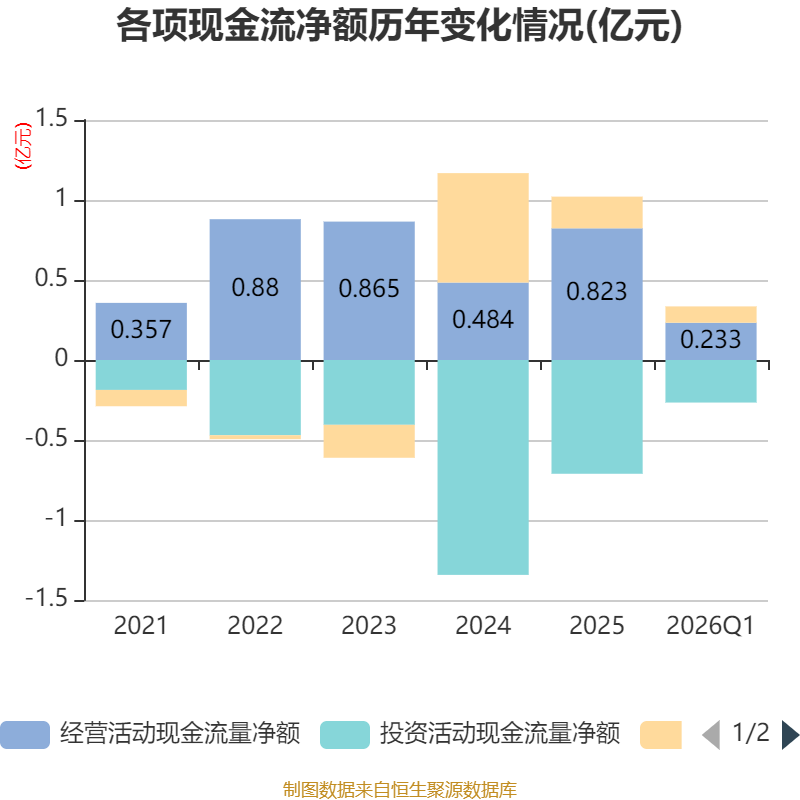 截至2026年一季度末,公司经营活动现金流净额为2328.35万元,同比增加3685.43万元;筹资活动现金流净额1019.36万元,同比减少2655.88万元;投资活动现金流净额-2663.32万元,上年同期为-3298.54万元。