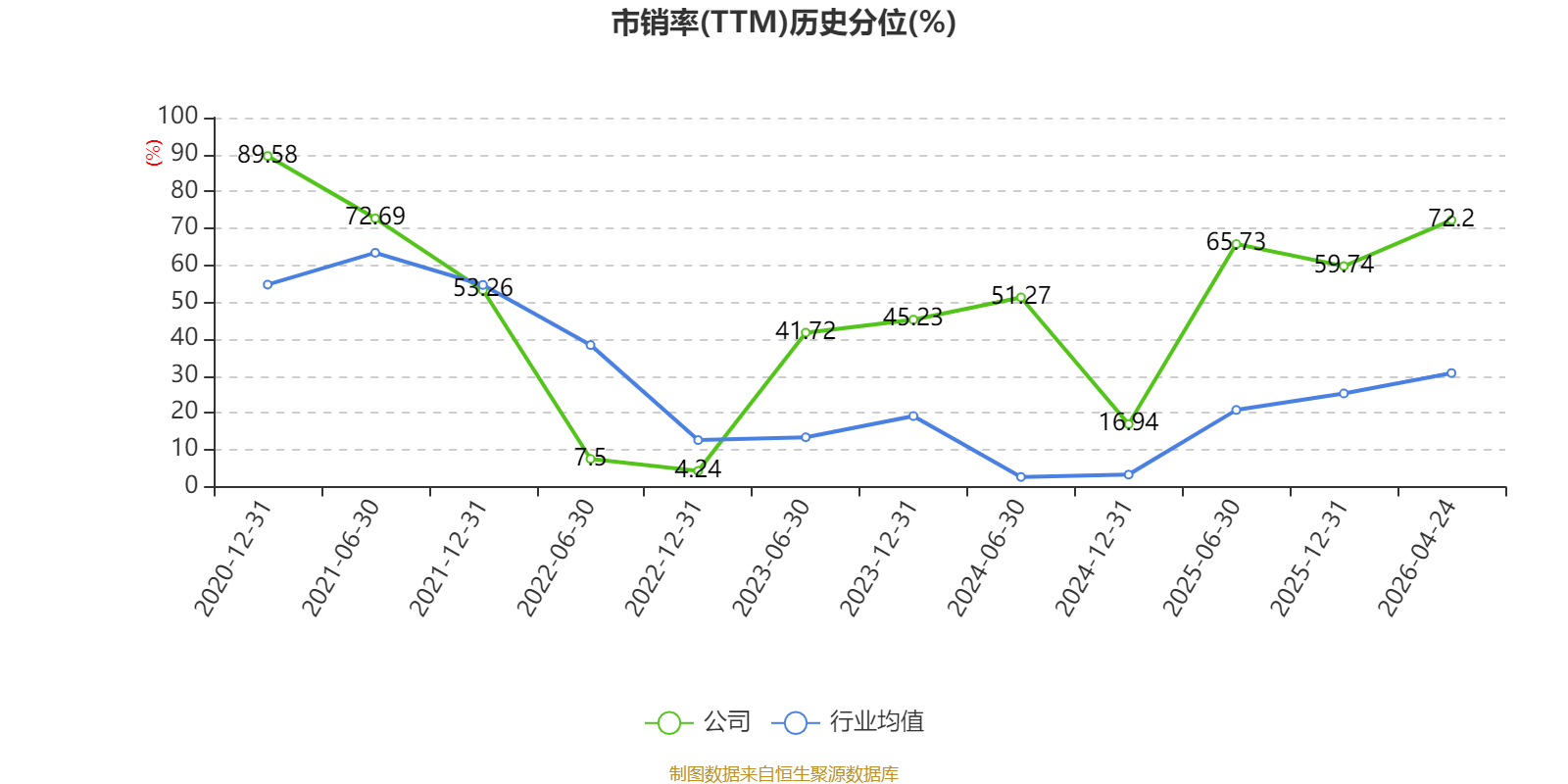以4月24日收盘价计算,华信新材目前市盈率(TTM)约为41.78倍,市净率(LF)约2.91倍,市销率(TTM)约5.91倍。