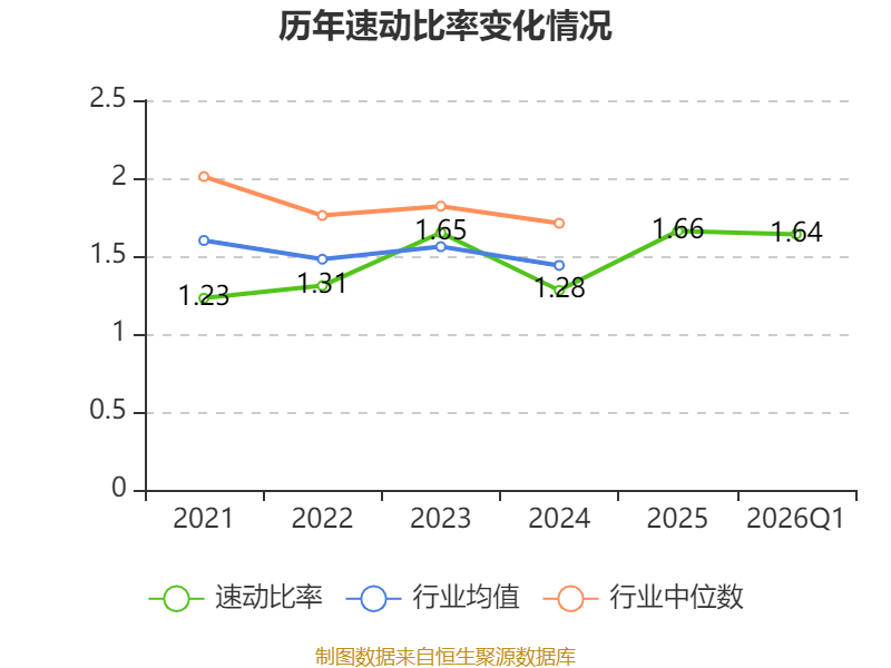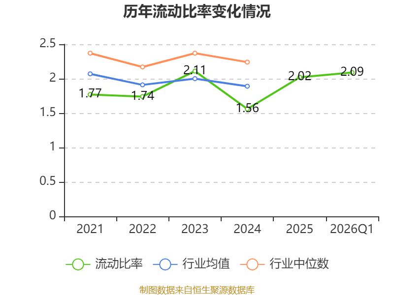 2026年第一季度,公司流动比率为2.09,速动比率为1.64。