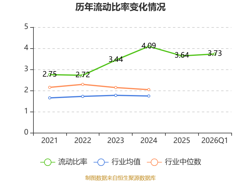 2026年第一季度,公司流动比率为3.73,速动比率为2.81。