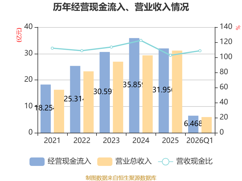 截至2026年一季度末,公司经营活动现金流净额为7787.48万元,同比下降47.13%;筹资活动现金流净额4019.05万元,同比减少1062.12万元;投资活动现金流净额-7199.05万元,上年同期为-4490.55万元。