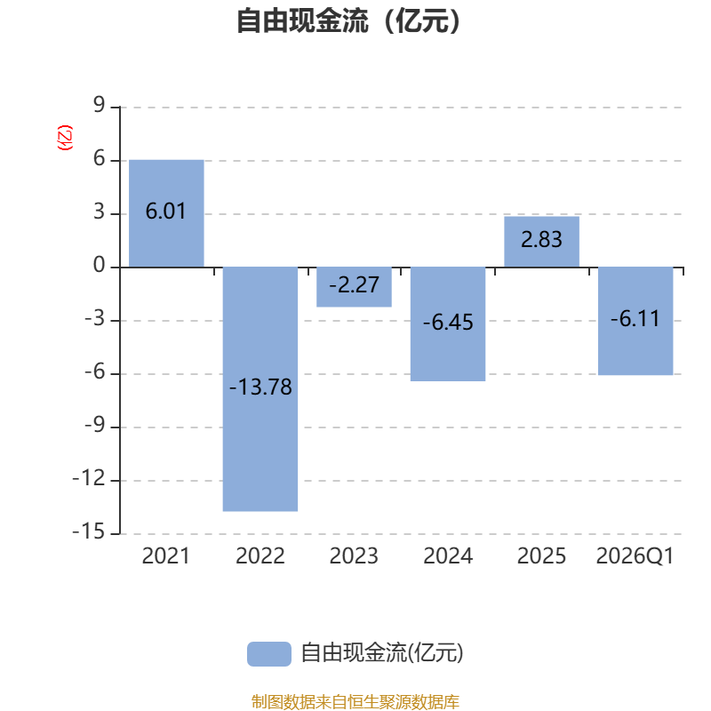 截至2026年一季度末,公司经营活动现金流净额为3.96亿元,同比下降20.6%;筹资活动现金流净额-5302.56万元,同比增加2804.68万元;投资活动现金流净额-3.38亿元,上年同期为-4.85亿元。