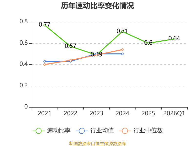 2026年第一季度,公司流动比率为1.66,速动比率为0.64。