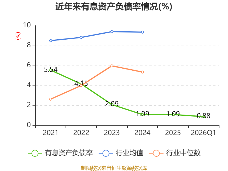 盈利能力方面, 2026年一季度公司加权平均净资产收益率为0.58%,同比下降0.13个百分点。公司2026年第一季度投入资本回报率为0.57%,较上年同期下降0.1个百分点。