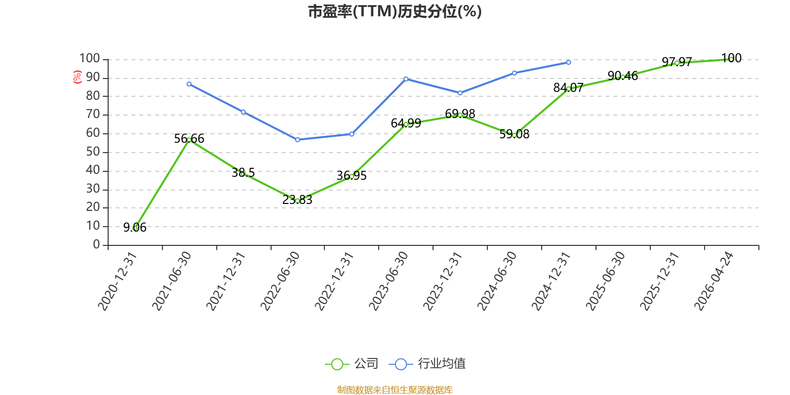 市盈率、市净率为负时,不显示当期分位数,会导致折线图中断。