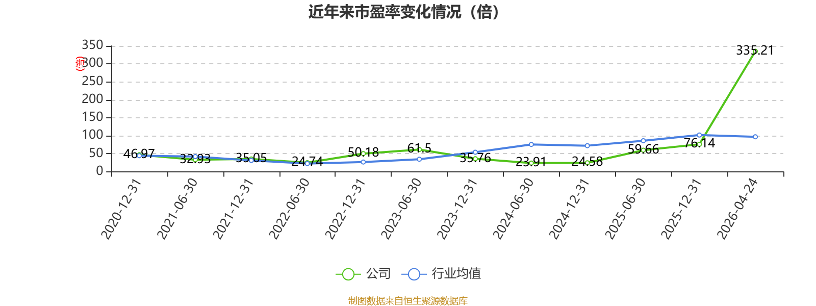 以4月24日收盘价计算,赛特新材目前市盈率(TTM)约为335.21倍,市净率(LF)约4.33倍,市销率(TTM)约5.01倍。