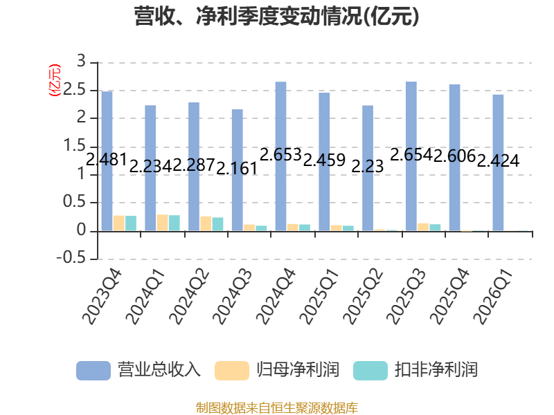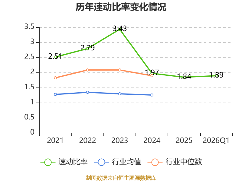 2026年第一季度,公司流动比率为2.29,速动比率为1.89。