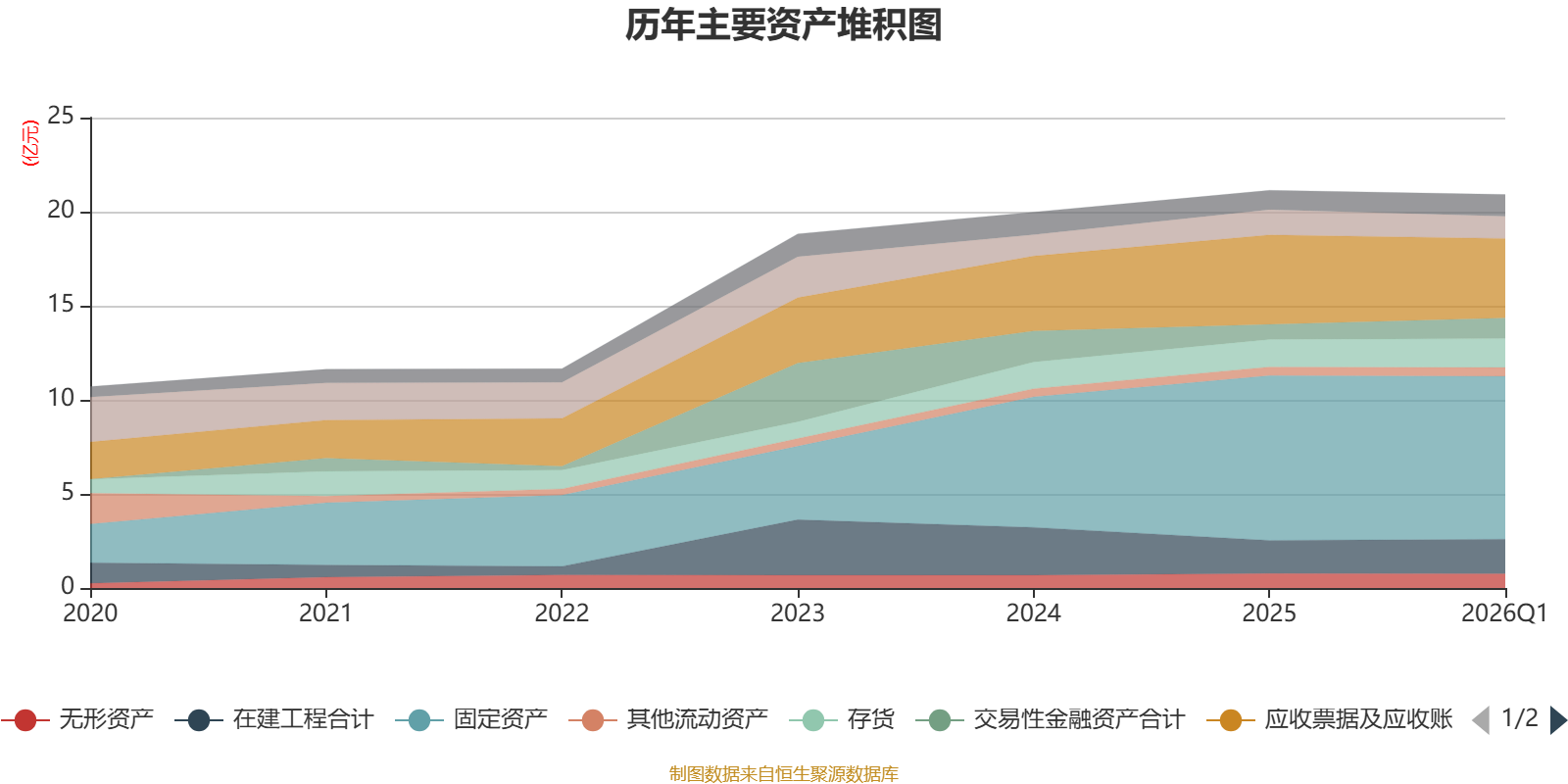 资产重大变化方面,截至2026年一季度末,公司应收票据及应收账款较上年末减少11.28%,占公司总资产比重下降2.32个百分点;交易性金融资产合计较上年末增加37.63%,占公司总资产比重上升1.48个百分点;货币资金较上年末减少12.61%,占公司总资产比重下降0.74个百分点;存货较上年末增加5.42%,占公司总资产比重上升0.45个百分点。