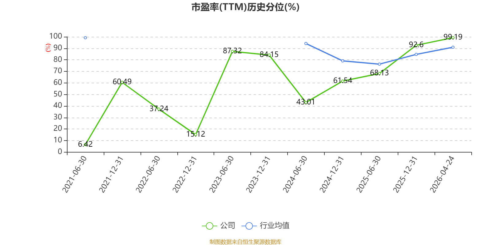 市盈率、市净率为负时,不显示当期分位数,会导致折线图中断。