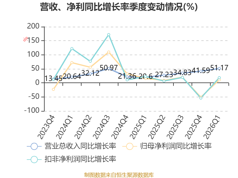 资产重大变化方面,截至2026年一季度末,公司固定资产较上年末增加16.08%,占公司总资产比重上升3.15个百分点;一年内到期的非流动资产较上年末减少49.97%,占公司总资产比重下降2.32个百分点;货币资金较上年末减少26.97%,占公司总资产比重下降2.13个百分点;交易性金融资产合计较上年末减少88.13%,占公司总资产比重下降1.09个百分点。