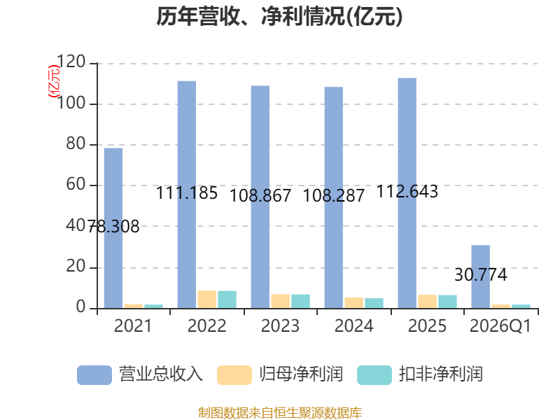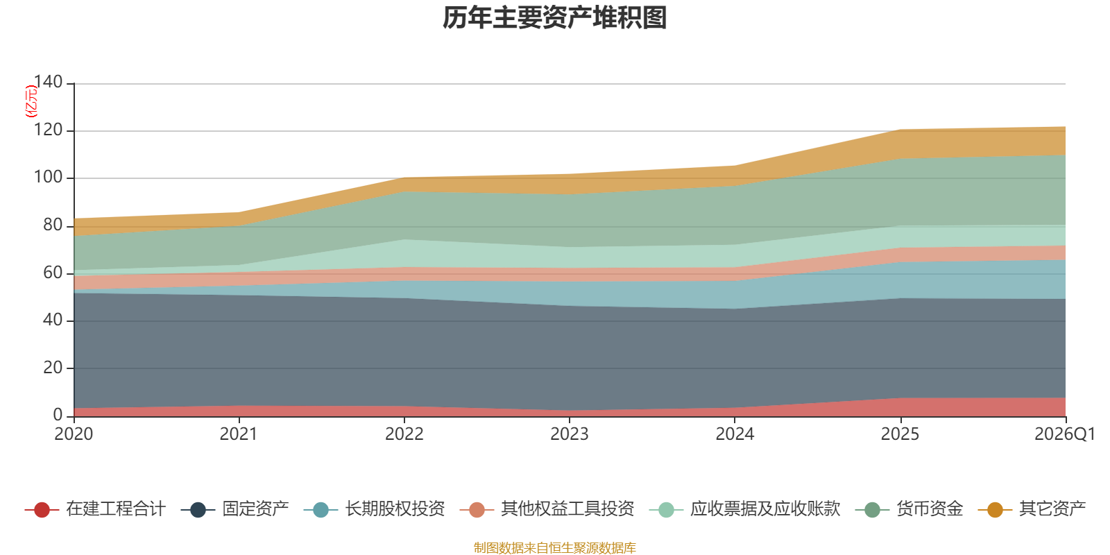 资产重大变化方面,截至2026年一季度末,公司长期股权投资较上年末增加8.12%,占公司总资产比重上升0.9个百分点;货币资金较上年末增加4.43%,占公司总资产比重上升0.81个百分点;固定资产较上年末减少0.87%,占公司总资产比重下降0.62个百分点;应收票据及应收账款较上年末减少6.98%,占公司总资产比重下降0.6个百分点。