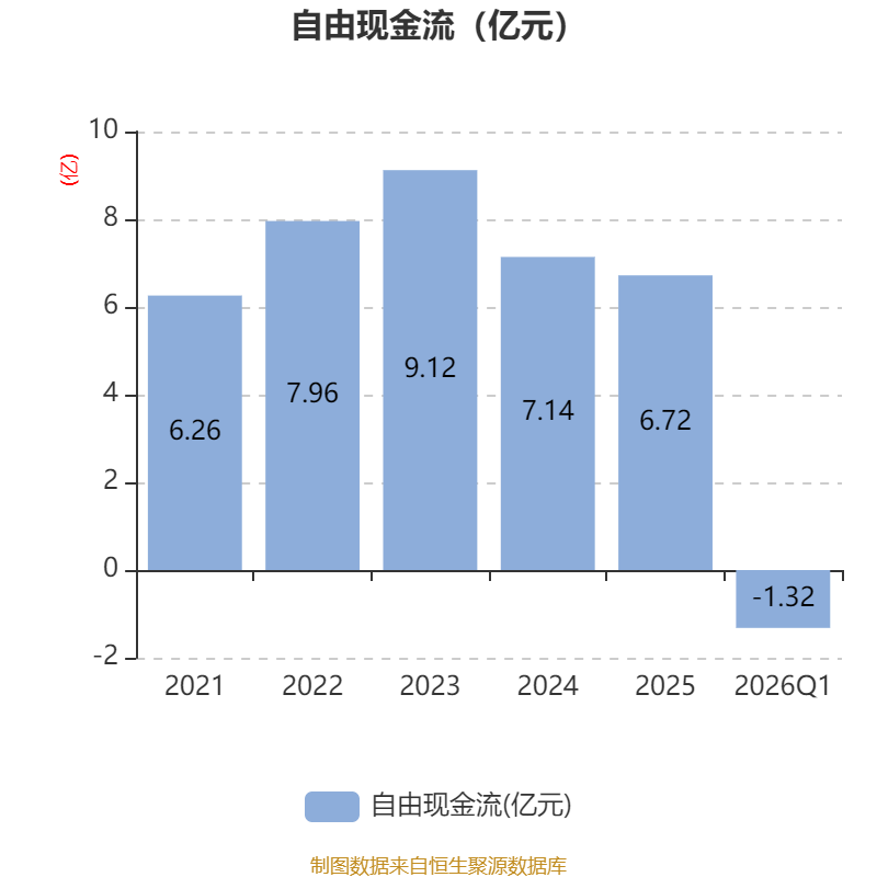 截至2026年一季度末,公司经营活动现金流净额为3.34亿元,同比增长14.75%;筹资活动现金流净额7324.06万元,同比增加2.48亿元;投资活动现金流净额-2.82亿元,上年同期为-7768.65万元。