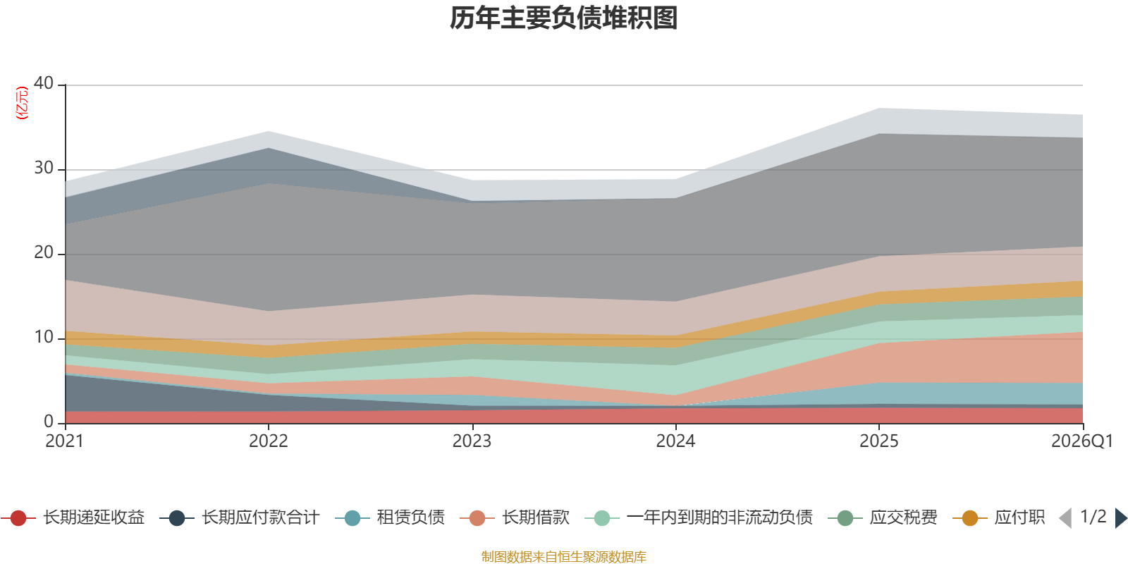 负债重大变化方面,截至2026年一季度末,公司应付票据及应付账款较上年末减少11.26%,占公司总资产比重下降1.45个百分点;长期借款较上年末增加29.59%,占公司总资产比重上升1.1个百分点;一年内到期的非流动负债较上年末减少22.46%,占公司总资产比重下降0.49个百分点;应付职工薪酬较上年末增加25.3%,占公司总资产比重上升0.3个百分点。