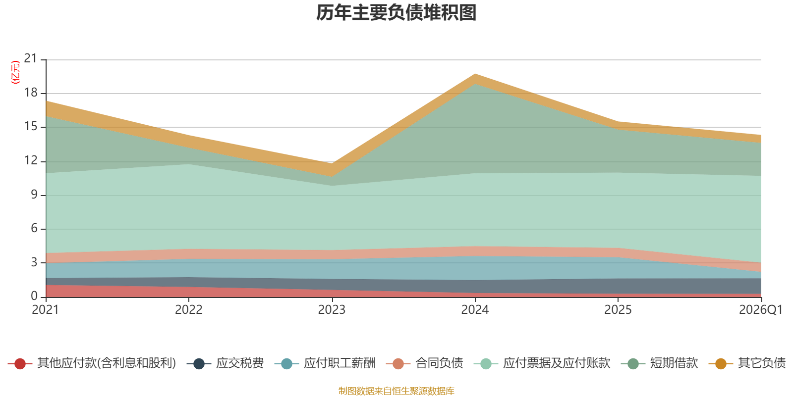 负债重大变化方面,截至2026年一季度末,公司应付职工薪酬较上年末减少69.35%,占公司总资产比重下降1.09个百分点;应付票据及应付账款较上年末增加15.35%,占公司总资产比重上升0.83个百分点;短期借款较上年末减少23.28%,占公司总资产比重下降0.75个百分点;合同负债较上年末减少2.66%,占公司总资产比重下降0.02个百分点。