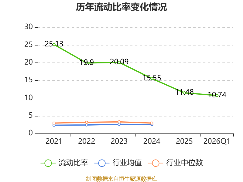 2026年第一季度,公司流动比率为10.74,速动比率为9.04。