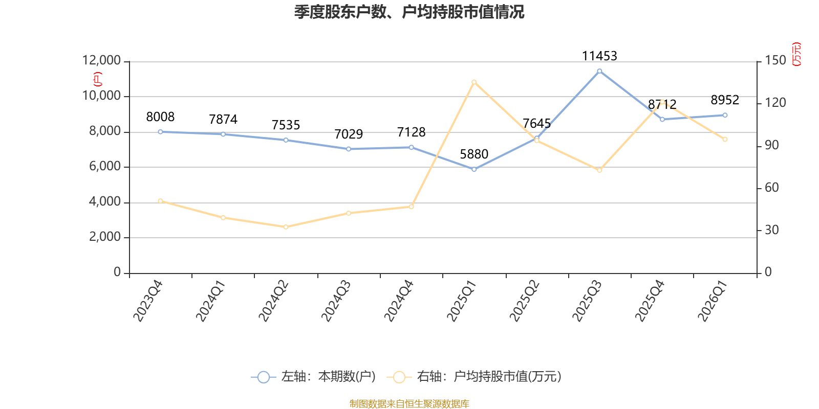 一季报显示,2026年一季度末的公司十大流通股东中,新进股东为招商证券股份有限公司、黄也、朱国莲,取代了上年末的泰康人寿保险有限责任公司-分红-团体分红-019L-FH001沪、香港中央结算有限公司、李建辉。在具体持股比例上,前海人寿保险股份有限公司-分红保险产品、张力、陈晓通持股有所上升,UBS AG持股有所下降。