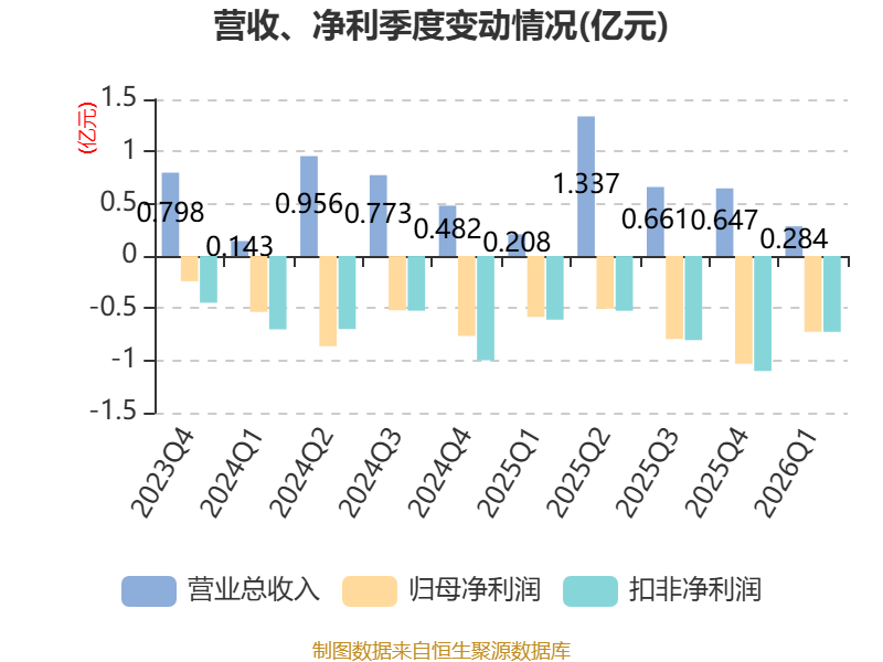 截至2026年一季度末,公司经营活动现金流净额为-5373.03万元,同比减少134.22万元;筹资活动现金流净额1794.48万元,同比增加2011.44万元;投资活动现金流净额6.08亿元,上年同期为4.92亿元。