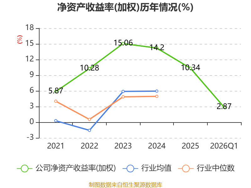 盈利能力方面, 2026年一季度公司加权平均净资产收益率为2.87%,同比上升0.2个百分点。公司2026年第一季度投入资本回报率为2.54%,较上年同期上升0.25个百分点。