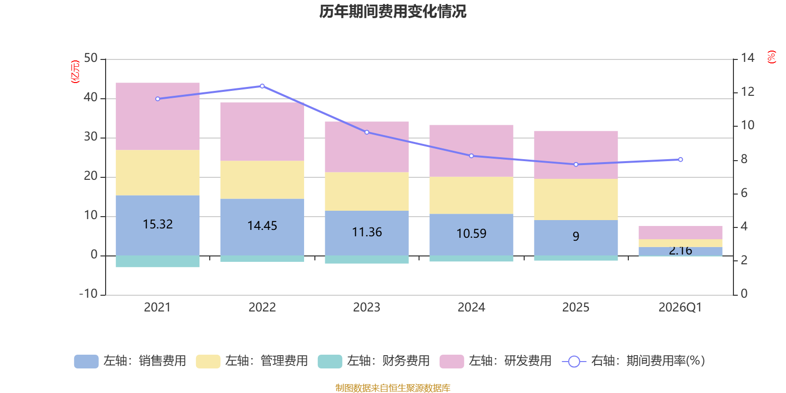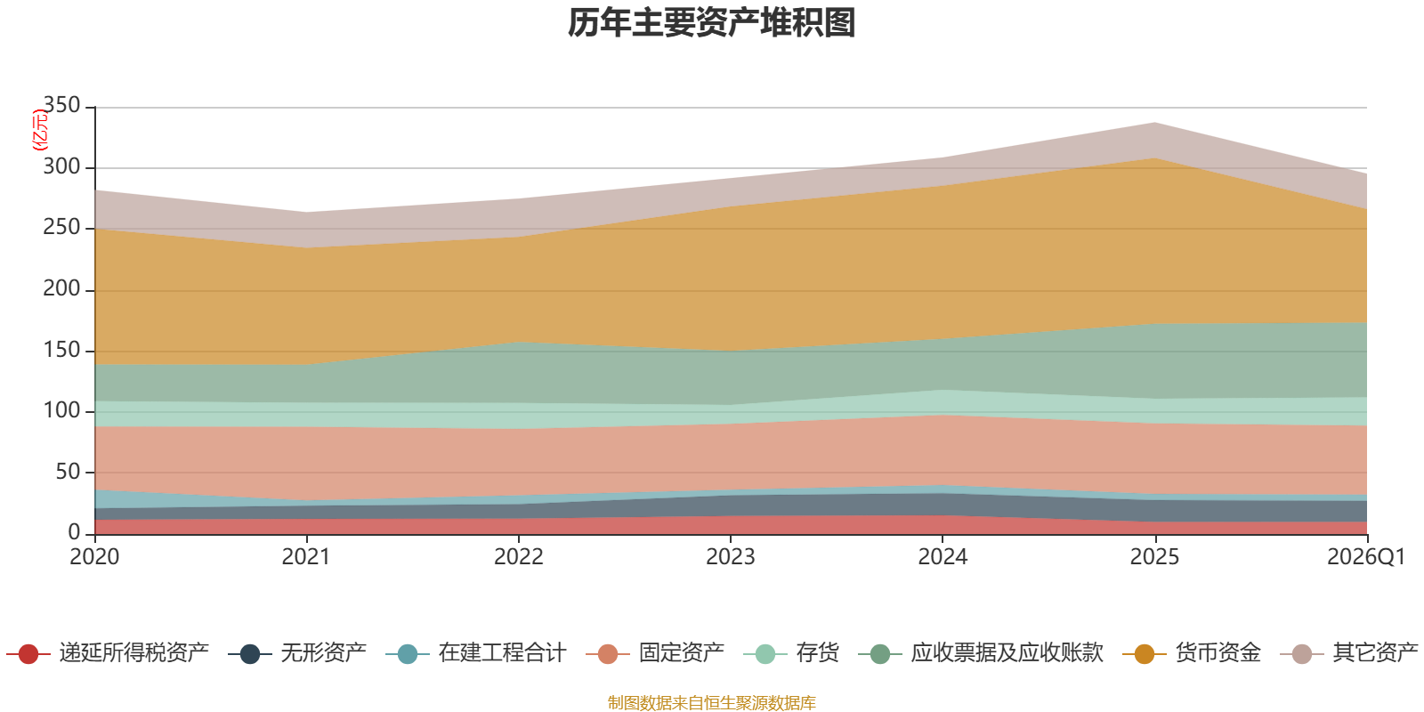 资产重大变化方面,截至2026年一季度末,公司货币资金较上年末减少31.52%,占公司总资产比重下降8.77个百分点;应收票据及应收账款较上年末减少0.35%,占公司总资产比重上升2.52个百分点;固定资产较上年末减少2.62%,占公司总资产比重上升1.93个百分点;存货较上年末增加15.66%,占公司总资产比重上升1.92个百分点。