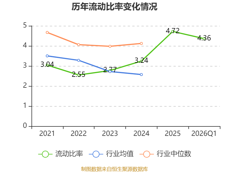 2026年第一季度,公司流动比率为4.36,速动比率为3.61。