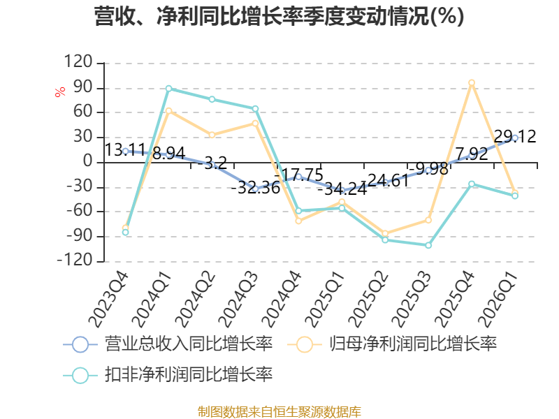 资产重大变化方面,截至2026年一季度末,公司交易性金融资产合计占公司总资产的7.7%,上年末为0;货币资金较上年末减少36.24%,占公司总资产比重下降6.45个百分点;应收票据及应收账款较上年末增加34.25%,占公司总资产比重上升2.78个百分点;存货较上年末减少16.54%,占公司总资产比重下降2.24个百分点。