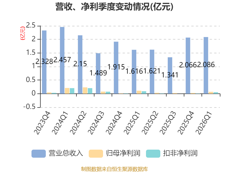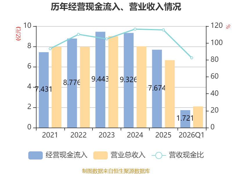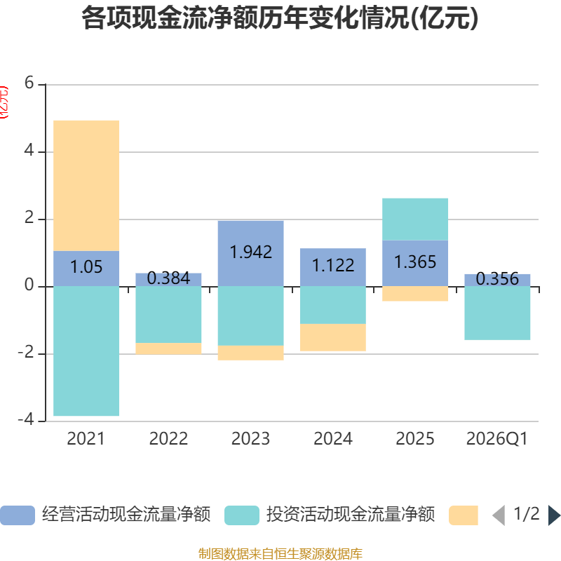 截至2026年一季度末,公司经营活动现金流净额为3562.65万元,同比增长86.38%;筹资活动现金流净额-6.87万元,同比减少1.27万元;投资活动现金流净额-1.6亿元,上年同期为-242.41万元。